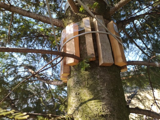 Pozwala na montaż na drzewach o dużym obwodzie.