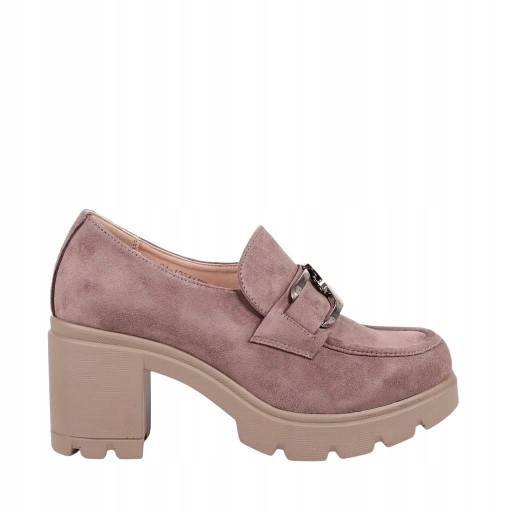MODNE PÓŁBUTY MOKASYNY NA OBCASIE SŁUPKU LEKKIE CIEMNY BEŻ BRĄZOWE ZAMSZOWE