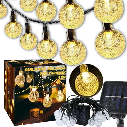 GIRLANDA SOLARNA OGRODOWA ŚWIETLNA LAMPKI SOLARNE 100 ŻARÓWEK LED 12M