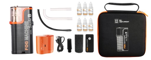 Lensgo Smoke B to bezprzewodowa wytwornica dymu oferująca imponującą wydajność. Urządzenie z powodzeniem sprawdzi się wśród osób robiących zdjęcia, nagrywających filmy lub koordynujących występy sceniczne lub eventowe pokazy. Generator jest w stanie wytworzyć 20 m³ dymu w ciągu minuty. Urządzenie wyróżnia również bogaty zestaw akcesoriów. Specjalne rurki, filtr, dysza dyfuzyjna oraz nakładka z elektrycznym wiatrakiem to narzędzia, które pozwolą uzyskać różne typy dymu lub mgły. Urządzenie mieści się w dłoni i z powodzeniem można nim sterować jedną ręką. Dołączony do zestawu pilot umożliwia również zdalną kontrolę. Wbudowany akumulator naładujesz za pomocą uniwersalnego portu USB-C. Do zestawu dołączono również solidną walizkę transportową i 6 butelek z płynem do uzupełniania.