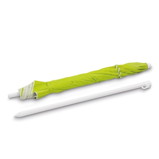 Pozostałe informacje: - maszt stalowy składający się z dwóch części, - dolna część masztu- średnica: 32 mm, - górna część masztu- średnica: 28 mm, - czasza złożona z 8 szprych, średnica szprychy: 3 mm, - łamanie metalowe- możliwość pochylenia czaszy parasola, - regulacja wysokości, - 100% tkanina poliestrowa, wodoodporna- 160 gr/m², - ochrona przed promieniowaniem UV 50+, - wentyl przeciwwiatrowy