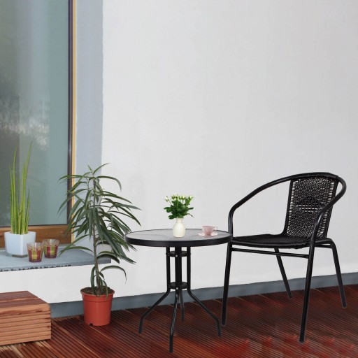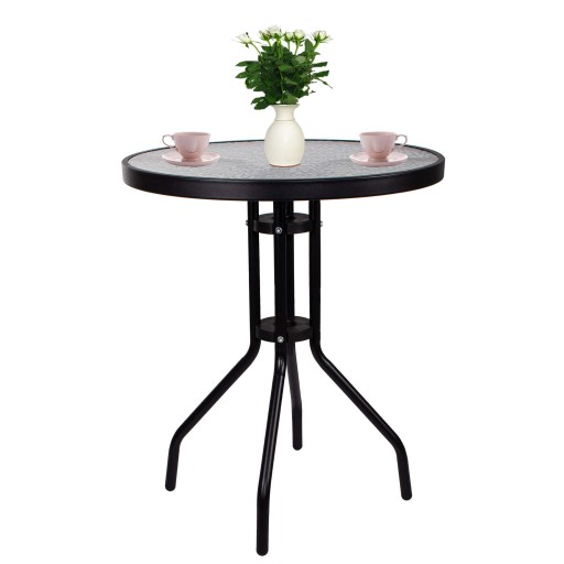 STÓŁ BALKONOWY STOLIK OGRODOWY OKRĄGŁY SZKŁO CZERŃ