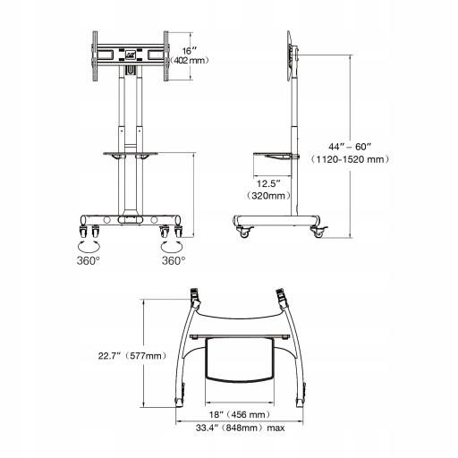 - Inne: Stojak na kółkach z funkcją blokady, System prowadzenia kabli, Uchwyt na soundbar