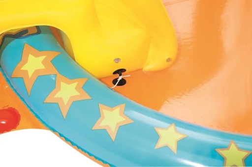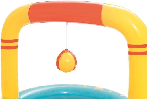 - WIELE ELEMENTÓW – w zestawie znajduje się wiele elementów, w tym m.in. piłki i kosze do gry, pryskająca wodą piłka, basen, zdejmowana zjeżdżalnia, kręgle, dmuchane kółka oraz dmuchana poduszka, które stanowią urozmaicenie i frajdę, pozwalając bawić się Twojemu dziecku bez końca.