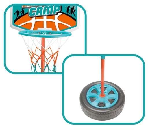 W zestawie znajduje się pompka oraz piłka. Piłka wykonana została z bezpiecznego tworzywa dzięki czemu może być używana także w domu. Jej faktura przypomina prawdziwą piłkę do kosza, ale jest lżejsza co pozwala na zabawę nią także przez najmłodszych.
