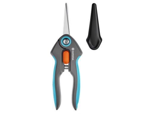 Nożyce FreshCut marki GARDENA doskonale nadają się do zbierania świeżych ziół i owoców jagodowych oraz do cięcia kwiatów. Wąskie, ostro zakończone ostrza wykonane z odpornej na korozję i trwałej stali imponują przy każdym cięciu. FreshCut umożliwiają czyste i precyzyjne cięcie po same końcówki. Nożyce do ziół i warzyw radzą sobie także w ciasnych przestrzeniach, można więc z łatwością zbierać bazylię czy zwiędłe kwiaty. Wygodnie i bezpiecznie leżą w dłoni dzięki ergonomicznym, antypoślizgowym rękojeściom ErgoTec z miękkimi uchwytami. Dla bezpiecznego przechowywania i transportu, na zamknięte nożyce należy założyć dołączoną nasadkę zabezpieczającą. Mechanizm blokady uruchamianej jedną ręką pozwala w prosty sposób blokować i odblokowywać nożyce. Bez względu na rodzaj ciętych roślin, ostrza dopuszczone do kontaktu z żywnością nie wpływają na ich smak ani zapach. Aby ułatwić czyszczenie, nożyce można myć w zmywarce.