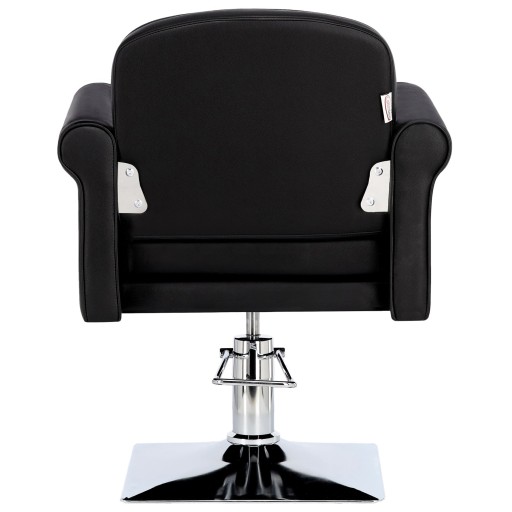 Fotel charakteryzuje się eleganckim i ergonomicznym designem, który pozwala na wygodną pracę fryzjera oraz relaks klientów.