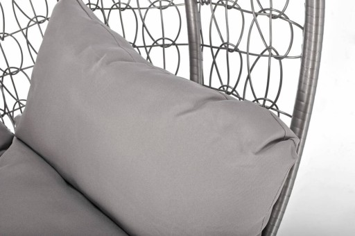 Komfortowy wypoczynek w fotelu zawieszonym jest zapewniony dzięki bardzo wygodnym i miękkim poduszkom. Poduszka o obfitej grubości, wypełniona watą poliestrową, idealnie dopasowuje się do krzywizny kokona. Dodatkowo, niewielki podgłówek można zamocować do stelaża na preferowanej wysokości, zapewniając wygodne podparcie dla głowy.