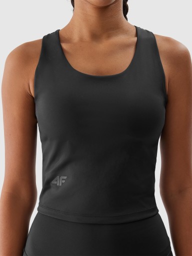 Top sportowy damski jest wykonany z materiału syntetycznego, który zapewnia trwałość i jest łatwy w pielęgnacji. Dzięki dodatkowi elastanu (16%) jest lekko rozciągliwy i wygodnie układa się na sylwetce.