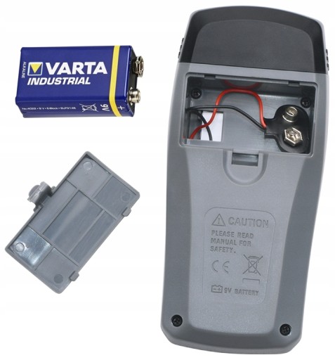 - Wilgotnościomierz zasilany jest baterią 9V typu 6F22 (brak w zestawie) co pozwala na długą i bezproblemową pracę urządzenia.