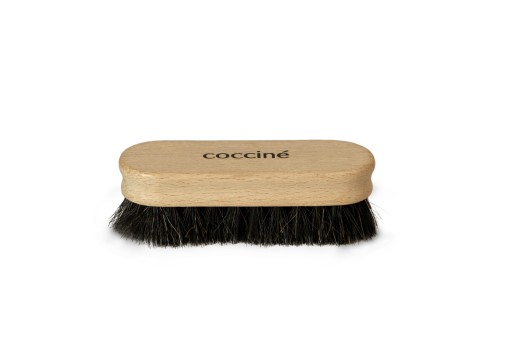 Szczotka jest wykonana z końskiego włosia. Ergonomiczna drewniana rączka dobrze leży w dłoni podczas rozprowadzania pasty na butach i galanterii skórzanej.