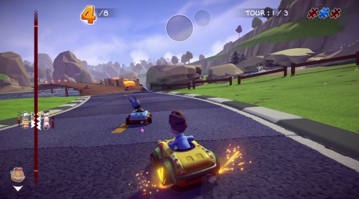 Wybierz swoją postać i swojego gokarta zależnie od właściwości i swojego stylu jazdy. Bądź najlepszy na starcie i panuj nad poślizgami i zakrętami, tak aby zyskać na czasie i prześcignąć swoich przeciwników. Wykorzystaj zwariowane przedmioty oferowane jako bonusy, jak np. poduszkę czy magiczną różdżkę, do przejęcia kontroli nad konkurentami i przekroczenia linii mety jako zwycięzca!