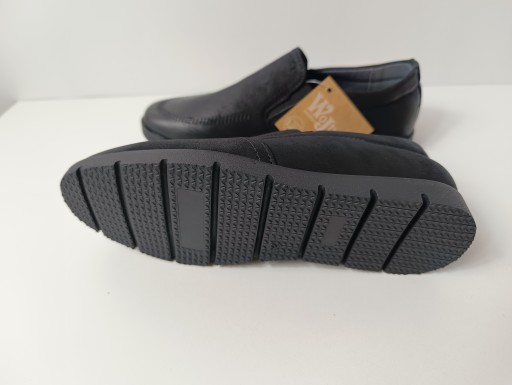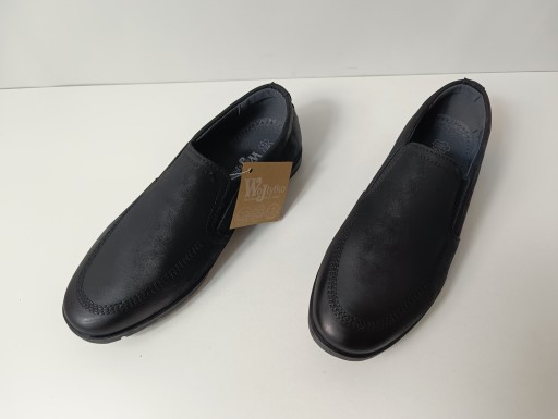 Mokasyny wizytowe dla chłopca z firmy Wojtyłko wykonane z wysokogatunkowej skóry ekologicznej, we wnętrzu butów zastosowano profilowaną wkładkę skórzaną. Buty wygodne i solidnie wykonane. Kolor czarny. Fason pasujący na wszelkiego rodzaju imprezy okolicznościowe. Model 5W24430