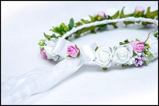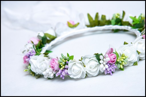 Przedmiotem oferty jest piękny wianek komunijny wykonany ręcznie z kwiatów piankowych oraz dodatków florystycznych.