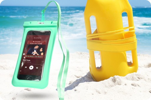 Etui możesz zabrać ze sobą do wody. Dzięki swojej "dmuchanej" budowie będzie unosić się na wodzie. Pamiętaj, że musi zostać położone "na płasko" na tafli wody, w przeciwnym wypadku zacznie się zanurzać.