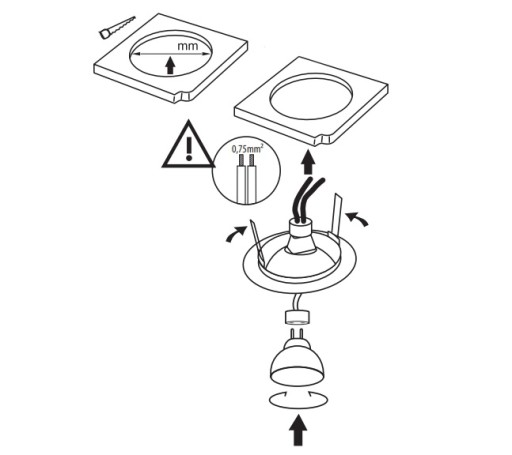 - Wyrób jest nieodpowiedni do montażu na podłożu normalnie palnym: >35W
