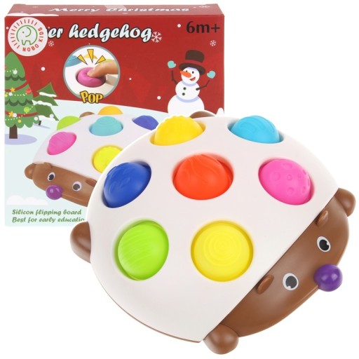 Jeżyk sensoryczny pozwala na dotykanie różnych faktur i powierzchni. Zabawa polega na wciskaniu kolorowych półkul umiejscowionych na grzbiecie jeżyka, które wydając specyficzny dźwięk, po chwili powracają do swojego pierwotnego kształtu. Zabawka umożliwia wspieranie rozwoju zdolności manualnych, motoryki małej i zręczności. Różnorodna tekstura półkul stymuluje wrażliwość dotykową dziecka i pozwala mu zrozumieć ich różnorodność. Jasne kolory poprzetykane wielobarwnymi, mocniejszymi akcentami stymulują percepcję wzrokową, odwracają uwagę dziecka i zmniejszają jego stres emocjonalny.