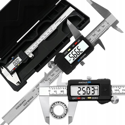CYFROWA SUWMIARKA Z WYŚWIETLACZEM LCD jest praktycznym elementem każdej skrzynki narzędziowej. Umożliwia ona precyzyjne pomiary: szerokość, wysokość i głębokość. Suwmiarka cyfrowa wyświetla wynik pomiaru na czytelnym, umieszczonym na urządzeniu wyświetlaczu cyfrowym. Może być on w dowolnym momencie włączony lub wyłączony. Zasilany jest bateryjką dołączoną do zestawu.