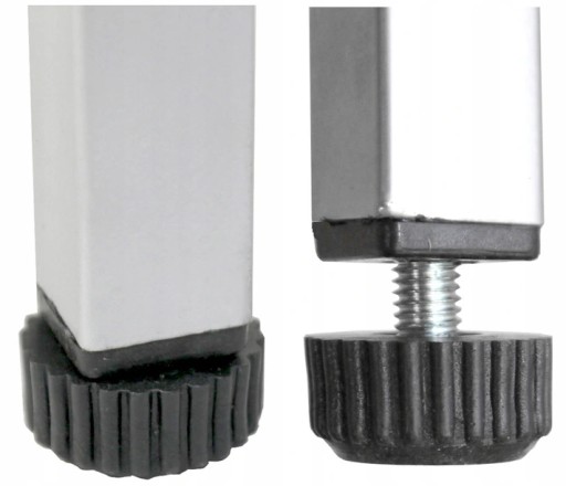 Nóżki posiadają regulacje . Pozwala to łatwo wyregulować stolik aby stał prosto nawet na nierównej powierzchni.