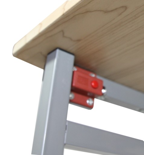 Stolik posiada blokady, które zapobiegają samoistnemu składaniu się zestawu. Jeśli chcesz rozłożyć stolik wystarczy nacisnąć przycisk.