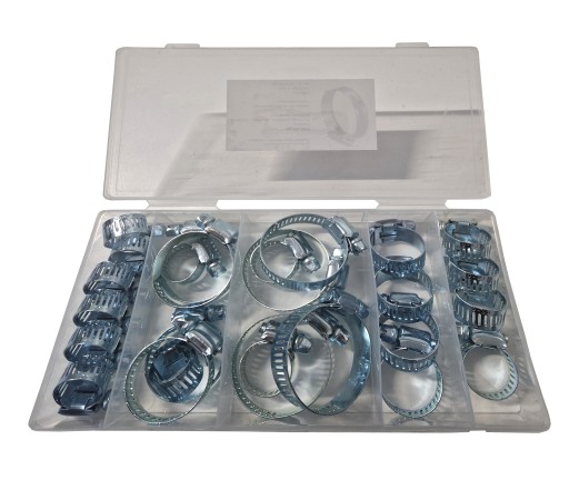 ZESTAW OPASEK ZACISKOWYCH 26 szt. OPASKA ŚLIMAKOWA 16 - 40MM + ETUI