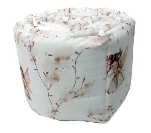 Wypełnienie stanowi włóknina antyalergiczna. Zewnętrzna strona ochraniacza to 100% bawełna.Ochraniacz posiada przyszyte troczki, dzięki którym mocujemy go do łóżeczka.