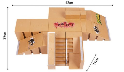 Zestaw składa się z 3 fingerboardów oraz konstrukcji przypominającej skatepark. Za sprawą 8 różnych, pasujących do siebie modułów w skład których wchodzą między innymi schody, poręcz czy skocznia możemy bawić się na różnej konfiguracji ramp. Pozwoli to na wykonywanie najbardziej atrakcyjnych akrobacji.