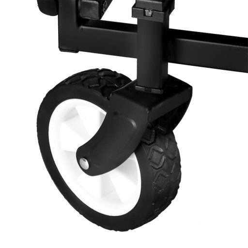 NC1602 posiada skrętne przednie kółka oraz teleskopową, regulowaną rączkę, która może być używana w dwóch płaszczyznach (pionowo, oraz w pochyleniu), to wszystko razem pozwala swobodnie manewrować wózkiem, nawet na nierównym terenie, czy na piasku zapewniając pełną kontrolę i stabilność.