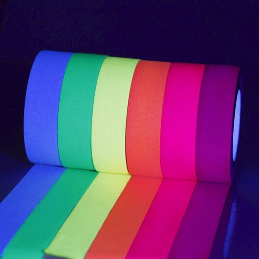 Fluorescencyjne kolory taśmy świecą w świetle UV.