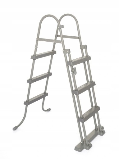 Dwustronna drabinka w całości wykonana została z metalu o podwyższonej trwałości, odpornego na działanie różnych czynników atmosferycznych oraz wody, również tej chlorowanej.