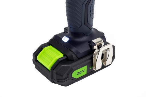 Wkrętarka zasilana jest mocnym akumulatorem litowo-jonowym o napięciu 20V i pojemności 2000mAh, co przekłada się na wysoką wydajność zarówno urządzenia jak i samej baterii