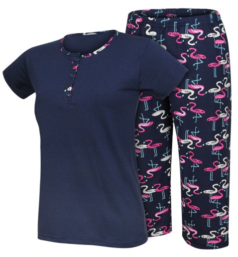 ЖЕНСКАЯ ХЛОПКОВАЯ ПИЖАМА БРЮКИ С КОРОТКИМ РУКАВОМ 3/4 ЦВЕТНЫЕ ФЛАМИНГИОНЫ