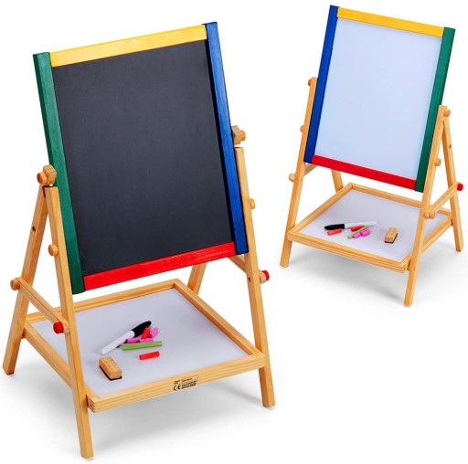 Dwustronna tablica - kredowa i magnetyczna to idealny prezent zarówno dla dziecka, które już rozpoczął naukę w szkole, jak i dla szkraba, który początek szkolnej edukacji ma jeszcze przed sobą. Starsze dzieci uwielbiają rysować i pisać po tablicy, dlatego ucieszą się mając własną w domu! Młodszym natomiast taka tablica pomoże oswoić się z przyszłym, zupełnie nowym doświadczeniem, jakim jest pobieranie nauk w szkolnej ławce. Świetnie sprawdzi się do gier i zabaw, albo jako pomoc dydaktyczna.