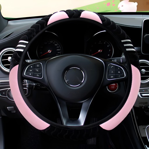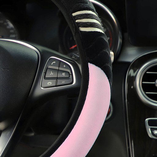 ЧЕХОЛ НА РУЛЬ МЕХОВОЙ КОШКА УНИВЕРСАЛЬНЫЙ ЧЕРНЫЙ РОЗОВЫЙ