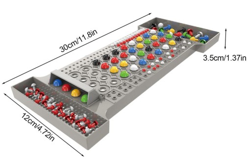 Gra zawiera: planszę, 108 pionków w 6 kolorach , 30 czerwonych i 30 białych pionków wskazujących, instrukcję (j.ang)