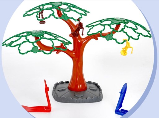- Przy użyciu specjalnych skoczni zawodnik usiłuje umieścić małpkę na drzewie, tak żeby zahaczyła się ręką na gałęzi