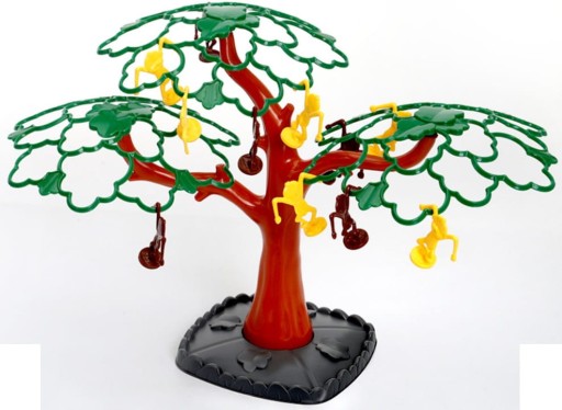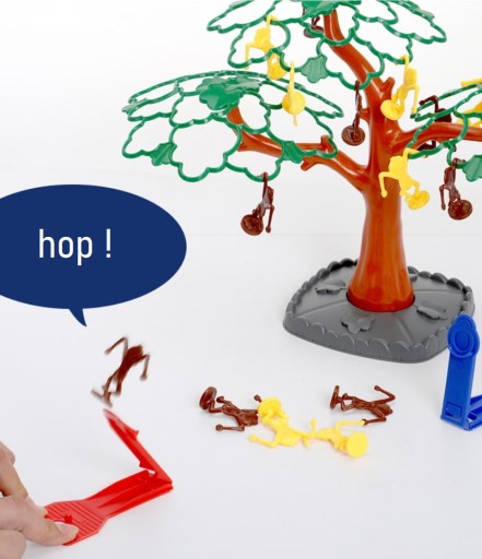 - Przy użyciu specjalnych skoczni zawodnik usiłuje umieścić małpkę na drzewie, tak żeby zahaczyła się ręką na gałęzi