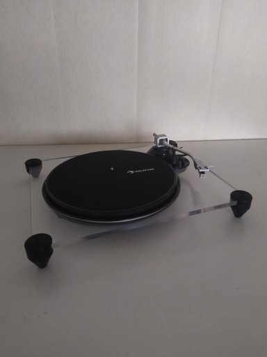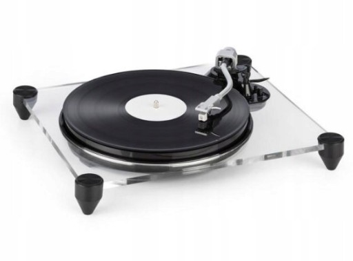 Elegancki gramofon o wyjątkowym designie, wykonany ze szkła akrylowego, oferujący doskonałe brzmienie winylowe. Oferuje napęd pasowy, 33 1/3 lub 45 obr./min, system przetworników