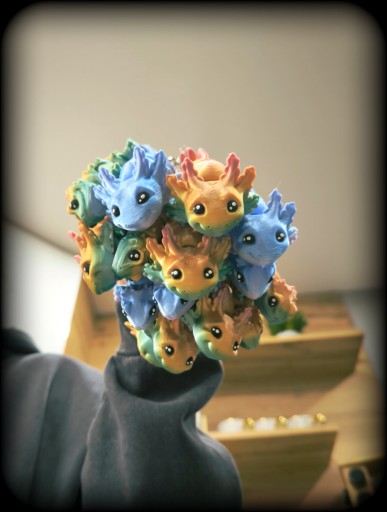 Breloki wykonane są z solidnego i odpornego materiału jakim jest polilaktyd. Jest biodegradowalny nie jest łatwopalny oraz jest nie jest toksyczny . Nie zaleca się pozostawiania breloka w pełnym słońcu na długi czas, może stać się plastyczny po nagrzaniu do temp. ok. 50-60 stopni.