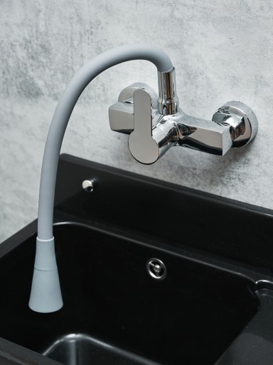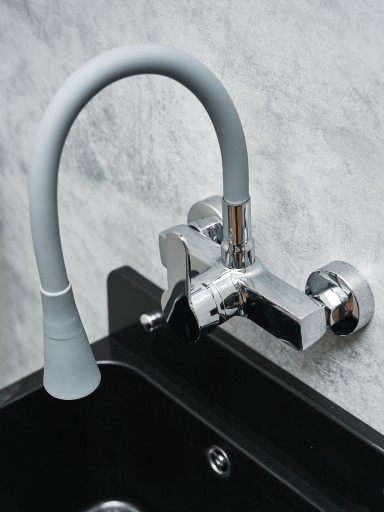 Bateria Kuchenna Ścienna FLEX PLUS Szara Elastyczna Wylewka Kran Kuchenny