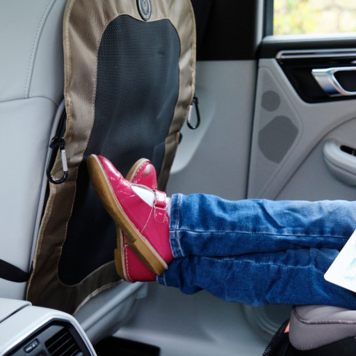 Praktyczna mata do ochrony tylej części siedzenia samochodowego przed zabrudzeniem. Po bokach mata ma dwa praktyczne zaczepy, na których można przymocować zabawki.