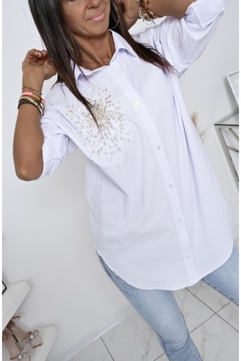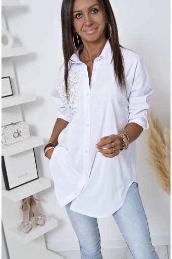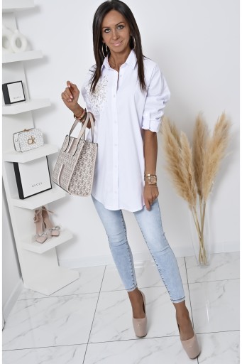 Przepiękne, eleganckie zdobienie haftem z przodu koszuli na prawej piersi!