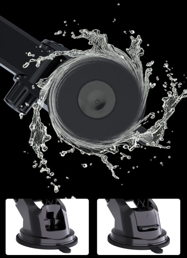 Żelowa przysawka z dwustopniową dźwignią pozwala na łatwe zamocowanie na różnych powierzchniach w samochodzie, takich jak przednia szyba, deska rozdzielcza, panel boczny lub inna gładka powierzchnia. Działanie na zasadzie próżni pozwala na pewne i trwałe zamocowanie.