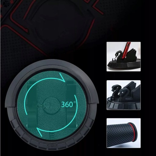 🚗 Uchwyt na telefon komórkowy na macie antypoślizgowej można obracać o 360 stopni, niezależnie od tego, czy jest poziomy, czy pionowy, można go dowolnie regulować, aby dopasować go do różnych kątów widzenia.