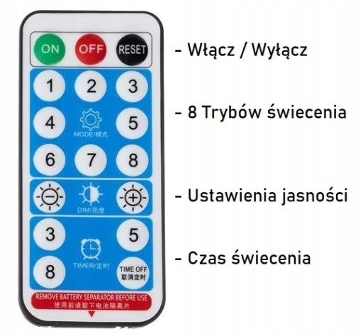 Lampki są wyposażone w czujnik zmierzchu umieszczonym w panelu solarnym uruchamia się automatycznie po zmierzchu dodatkowo jest możliwość ustawienia czasu świecenia 3, 5, 8 godzin lub bezczasowe.