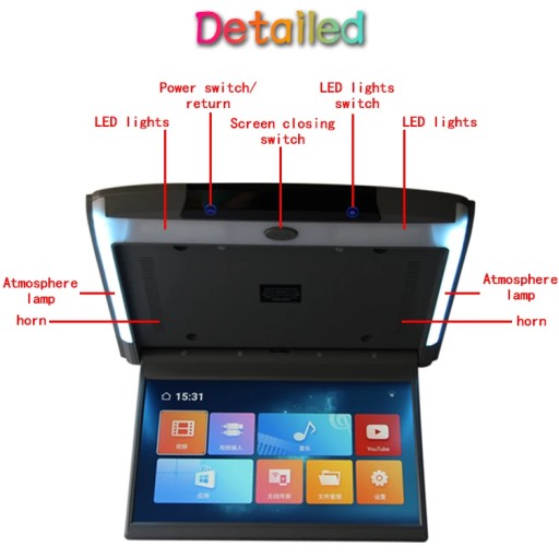 12,5-calowy wyświetlacz cyfrowy ekran Android 10.0 Monitor na dachu samochodu LCD rozkładany ekran nad głową multimedialny sufit wideo do montażu na dachu