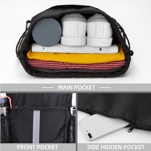 ⚽Duża komora na buty po prawej stronie plecaka ze sznurkiem na siłownię pomieści dwie pary butów. Przednia kieszeń zapinana na zamek jest wystarczająco pojemna, aby pomieścić drobne przedmioty. Wewnętrzna kieszeń przechowuje cenne przedmioty, aby uniknąć kieszonkowców. Dwie kieszenie z siatki pomieszczą butelki z wodą, parasole i krem przeciwsłoneczny.
