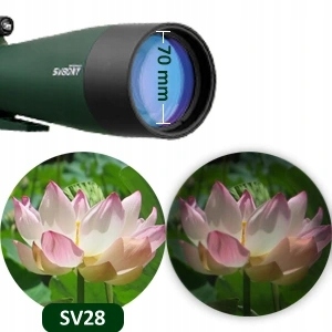 Sv28 Spotting Scope jest wyposażony w statyw, możesz dostosować statyw w górę iw dół; Zakres plamienia ma również wątek interfejsu 1/4, dopasowany do dowolnego standardowego statywu aparatu