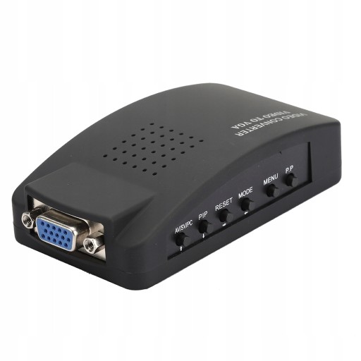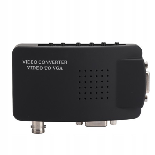 - Ten konwerter wideo BNC na VGA może obsługiwać obraz wideo w wysokiej rozdzielczości (do 1920 x 1080). Konwerter wideo może zapewnić wysoką jakość obrazu i stabilne wyjście obrazu do urządzenia wyjściowego VGA. Jest łatwy w instalacji i obsłudze, błyskawicznie przełącza źródło między Video, S-Video i PC za pomocą jednego przycisku i przełącza monitor na wyjście obrazu o wysokiej rozdzielczości. Cechy: