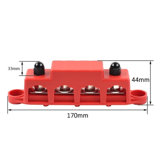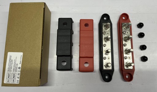 Wytrzymałe szyny zbiorcze to 4 x kołki M8, mają wiele punktów połączeń dla czerwonego zacisku dodatniego i czarnego zacisku ujemnego z otworami 5/16 cala, modułowa konstrukcja skrzynki, odłączana dla łatwej konfiguracji okablowania.